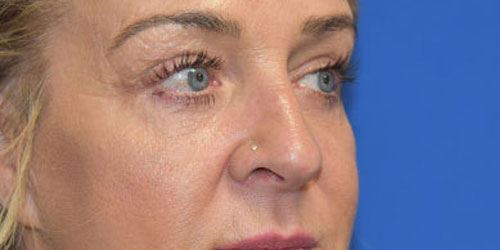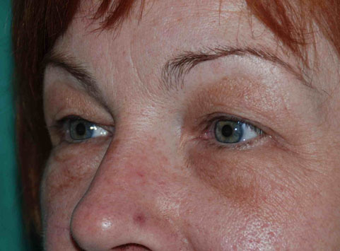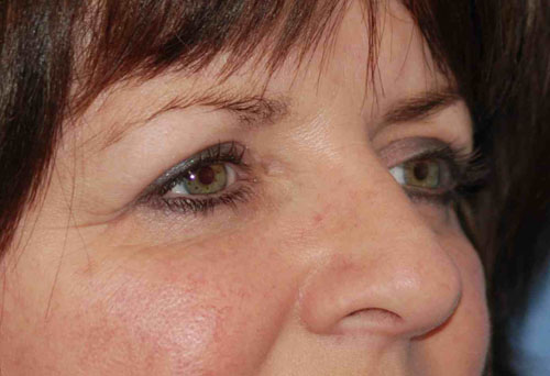 Only the wrinkles which are in the skin which is cut away will be removed and only the eyelids within the bony margins of the eye are treated by blepharoplasty. Folds of skin extending on to the cheek (festoons) or cheek descent will not normally be improved. Wrinkles in the area of the crow’s feet will remain and although the skin is much tighter it is still necessary to be able to open and close the eyes freely. The skin has less elasticity with age and for proper closure of the eye the upper eyelid will need to have surplus skin when it is open. Sometimes residual or recurrent wrinkles are suitable for treatment by chemical peeling or laser resurfacing. The operation has no effect at all on the dark colour of the lower eyelid.