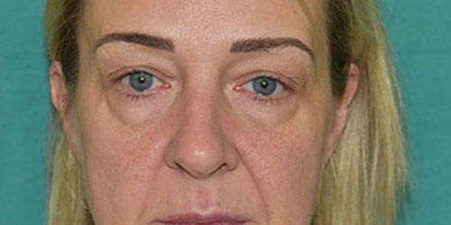 50 years old. Upper and lower lid blepharoplasty with fat removal.